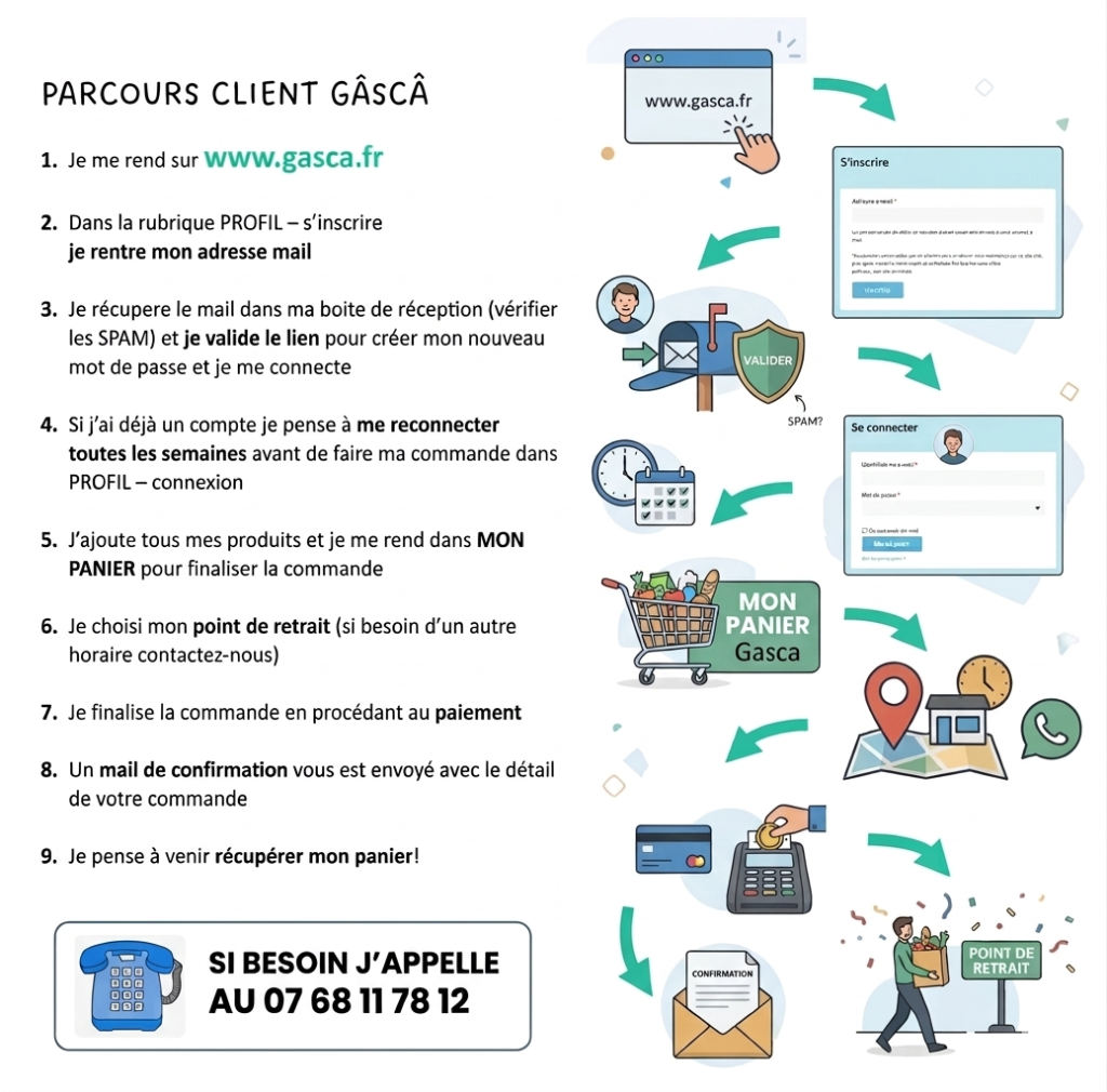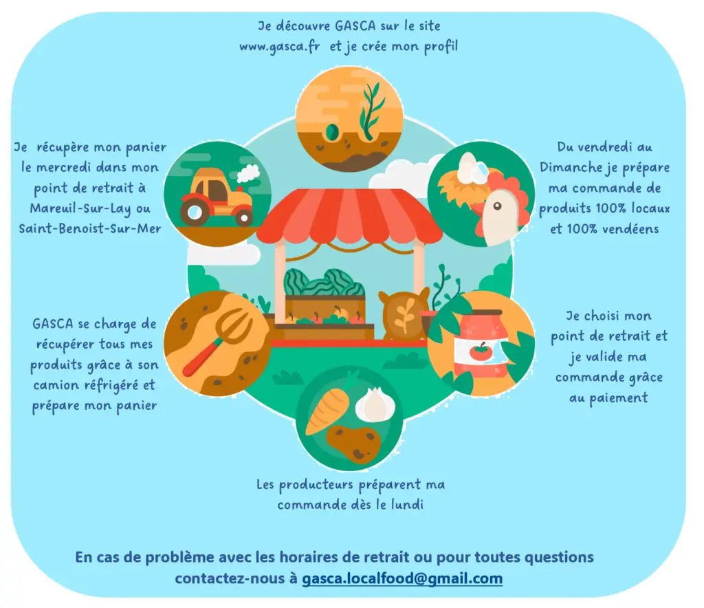 Avec Gâscă vos produits 100% vendéens dans un seul panier, commande le week-end et retrait à Mareuil-Sur-Lay ou à Saint-Benoist-Sur-Mer le mercredi