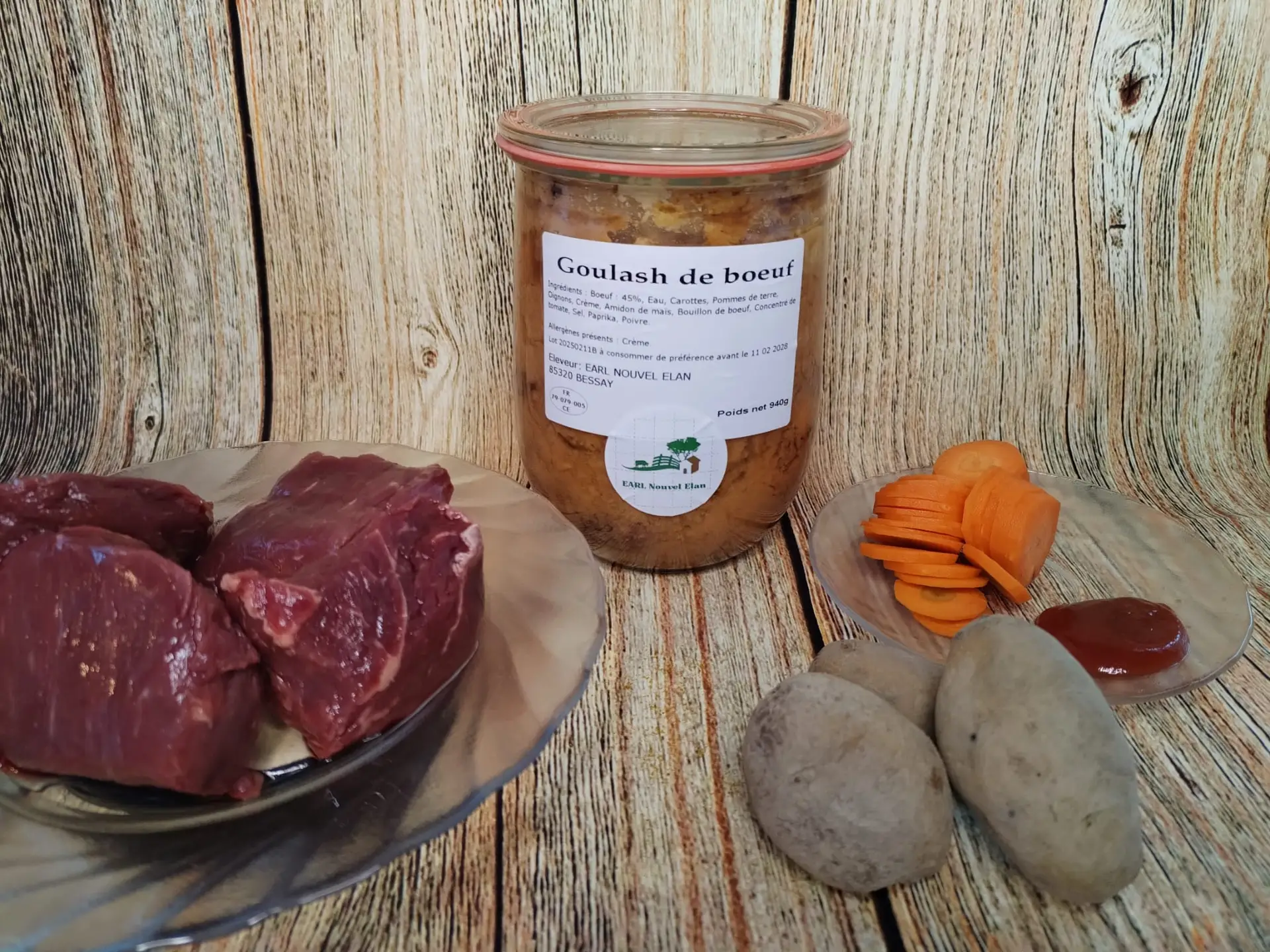 BŒUF 4 5 % , E AU, CA R O T T E S , P O M M E DE T E R R E , O I G N O NS , CR È M E , A M ID O N DE M A Ï S , F O ND DE V E AU, C O NCENT R É DE